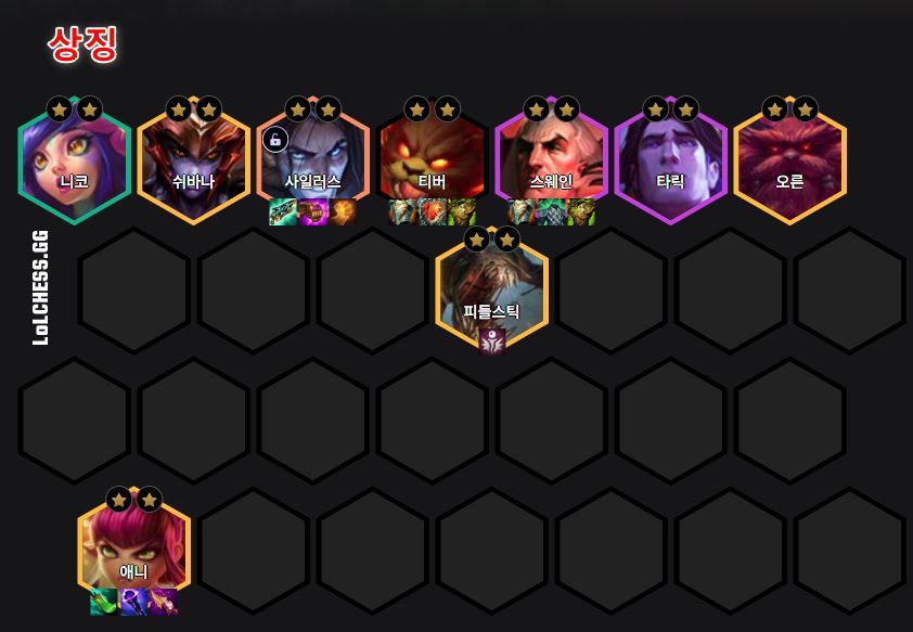 애니와 사일러스를 중심으로 마법 피해를 극대화하고, 강력한 탱커들을 배치하여 상대를 압도할 수 있는 강력한 조합을 완성할 수 있습니다.
